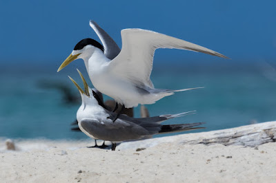 There were hundreds of terns on and around the sandbar. The Great Crested Terns congregated on one side and were largely all adults while the Lesser Crested Tern were on another and interestingly seemed to have a nursery for their chicks.
